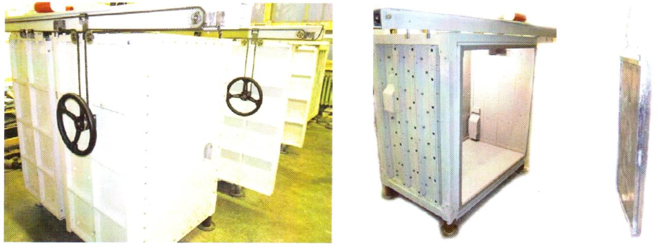 The cabinets are equipped with lighting, ventilation and an electric board with an electric protection, can be equipped with manual door opening control or with electric drive ,shipped to the customer both in the assembled and in the disassembled configurations.