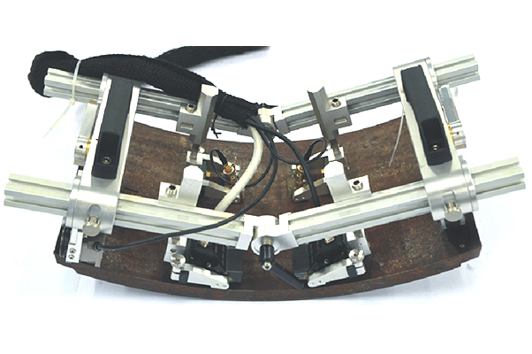 3. Two horizontal bars can be rotated, manually adjust a pair of probe clamping arms can realize detection from 6 inch pipe to plate in direction of circumference;