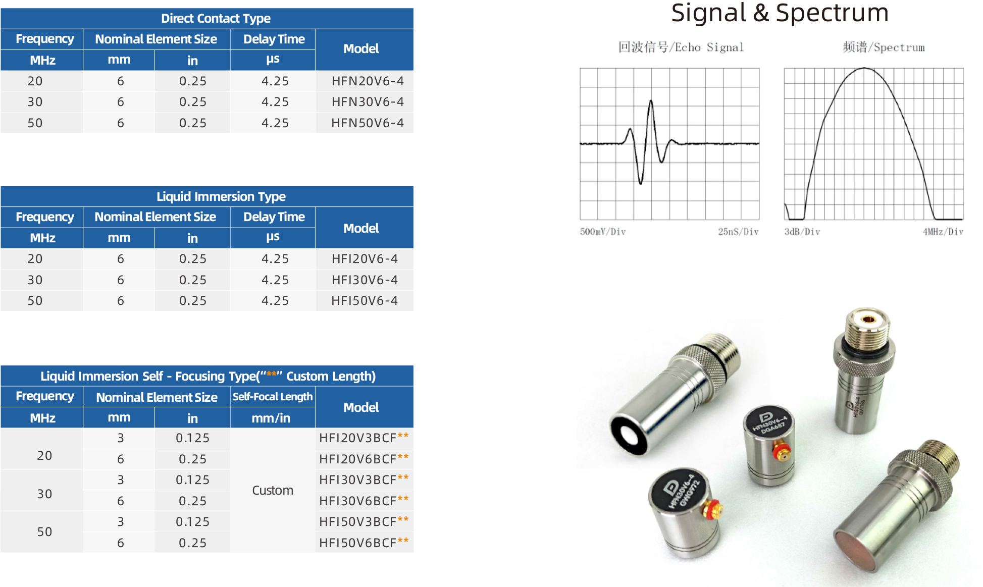 High frequency probe refers to a single element transducer with a frequency higher than 20MHz, which includes HF contact probe, HF immersion probe and HF immersion self – focusing probe.