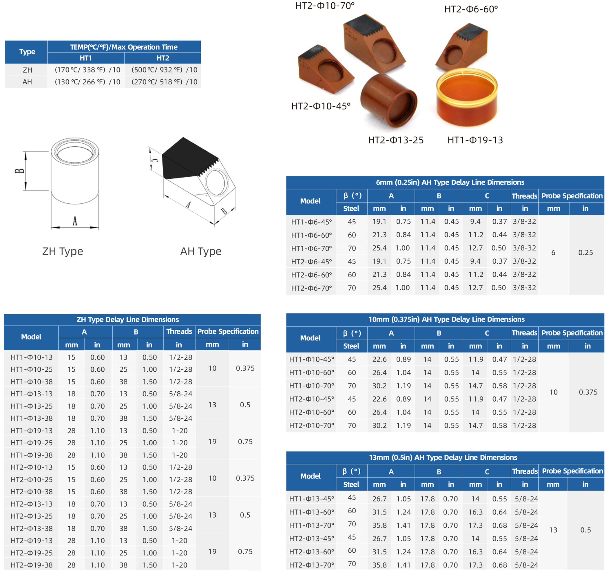 · Supply 0° (ZH Type) Longitudinal Incidence and 45°/ 60°/70° (AH Type) Shear Wave incidence Delay Lines