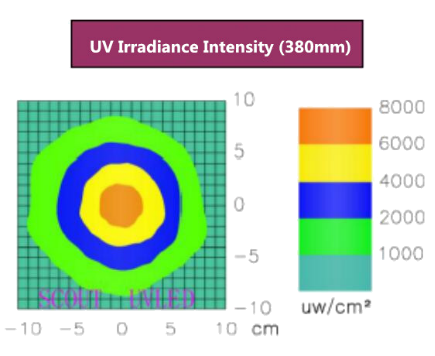 UV(Light)-FLUX Temp. 25℃ 380mm distance SC100-6K6000uW/ cm² Light-MAX1500LUX SC100-8K   8000uW/ cm² Light-MAX1500LUX