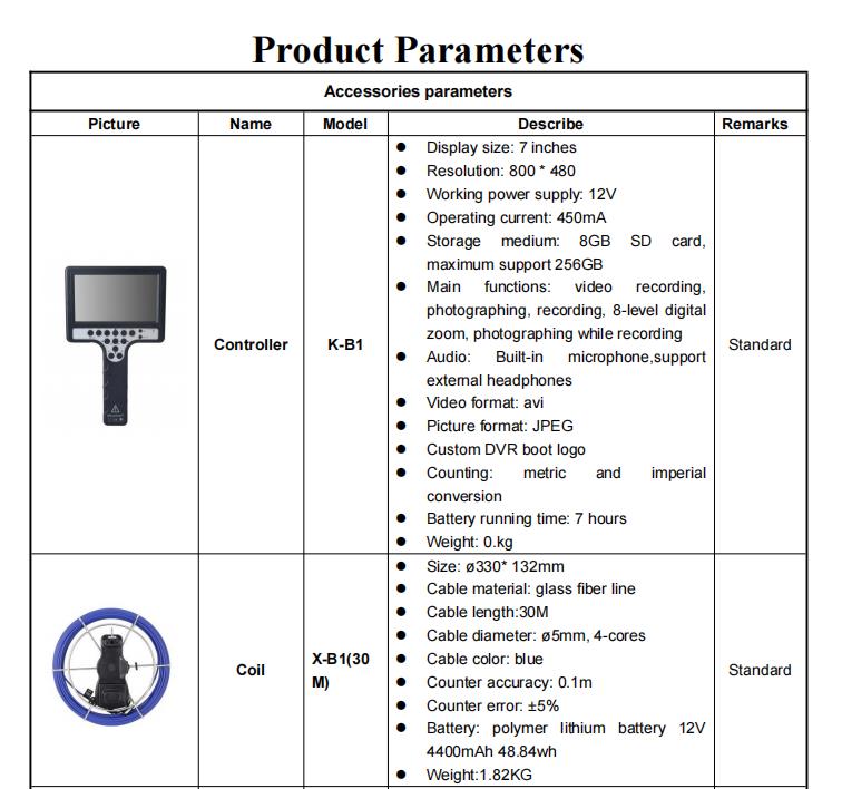 7mm/14mm/17mm/23mm/28mm Sewer Drain Inspection Camera With 7 Inch Monitor, 20m-60m Push Rod Cable